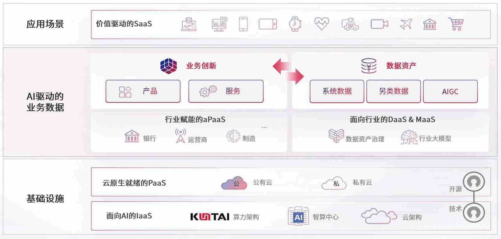 数字时代,,围绕企业数字化转型的关键要素,,,,ABG集团数码开创性的提出数云融合战略和技术体系框架,,,,着力在云原生、、、、数字原生、、、AI原生和信创产业上架构产品和服务能力,,,为处在不同数字化转型阶段的快消零售、、、、汽车、、金融、、、医疗、、、政企、、教育、、、运营商等行业客户提供泛在的敏捷IT能力和融合的数据驱动能力,,,构建跨界融合创新的数字业务场景和新业务模式,,,助力企业级客户建立面向未来的核心能力和竞争优势,,,全面推动社会的数字化、、、智能化转型升级。。。